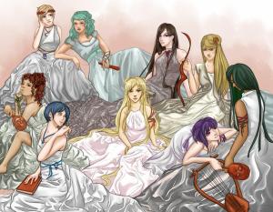 In ancient Greek religion and mythology, the Muses are the inspirational goddesses of literature, science, and the arts. They were considered the source of the knowledge embodied in the poetry, lyric songs, and myths that were related orally for centuries in ancient Greek culture.